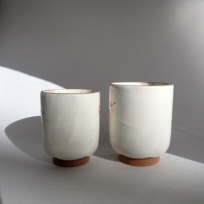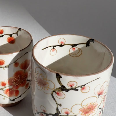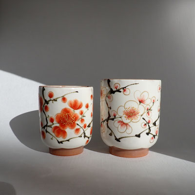 Ein exquisites Teetassen-Paar (Kyō-yaki/Kiyomizu-yaki), gefertigt in der traditionsreichen Töpferei Touan-gama in Kyōto.